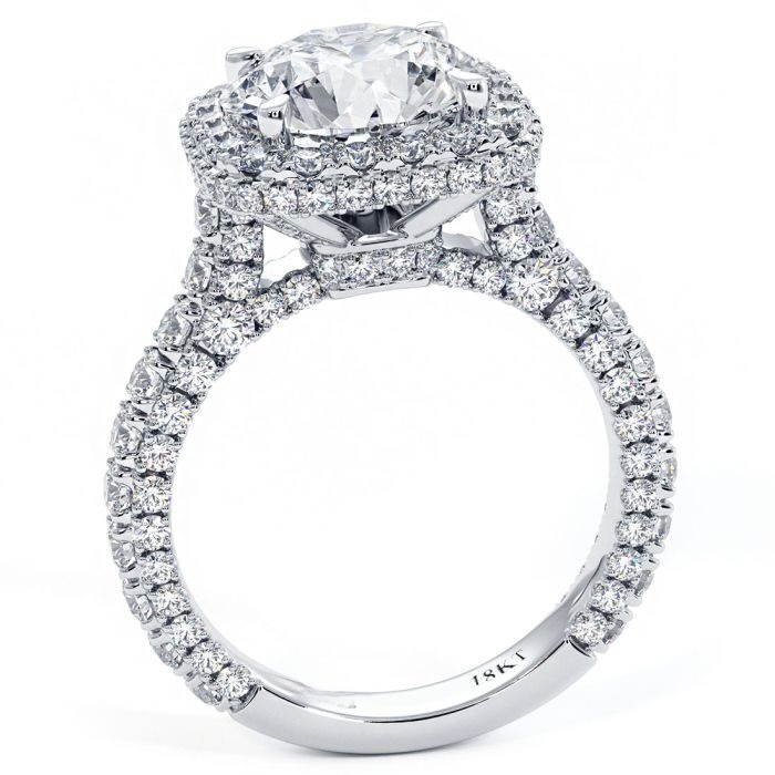 Cushion Halo With Round Center 3 Sided Micropavé Shank Diamond Engagement Ring